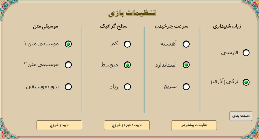 هرکجا از بازی میتوانید زبان شنیداری بازی را به فارسی یا ترکی تغییر دهید.